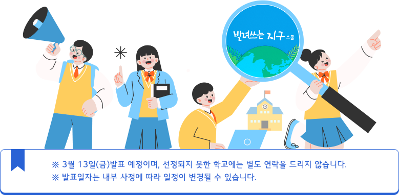 교육 이력 확인과 심사를 통해 선정된 학교는 추후 빌려쓰는 지구스쿨 홈페이지 공지사항 및 이메일과 문자를 통해 안내드립니다.
